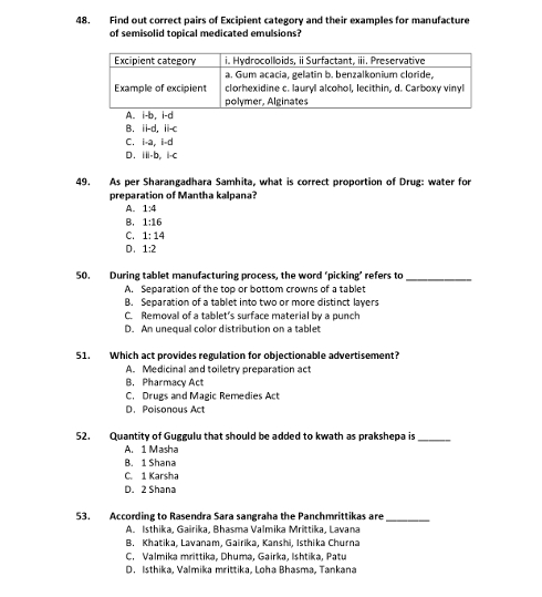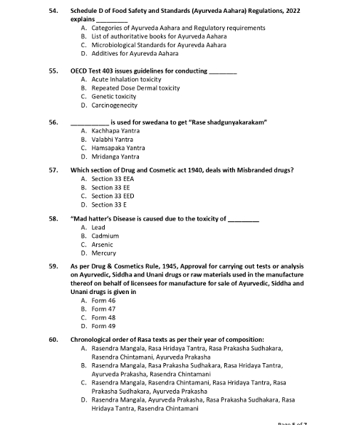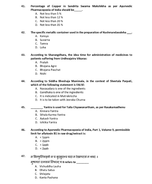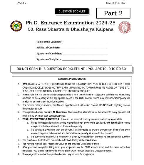 Ph.D Entrance Exam AIIA Rasa Shastra & Bhaishajya Kalpana 2024 Test Paper