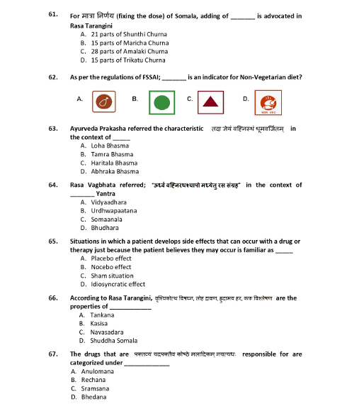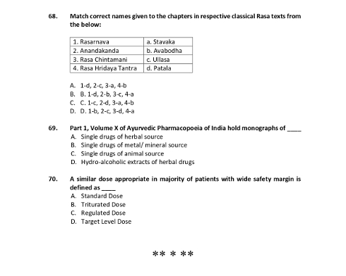 AIIA Rasa Shastra & Bhaishajya Kalpana 2024 Test Paper