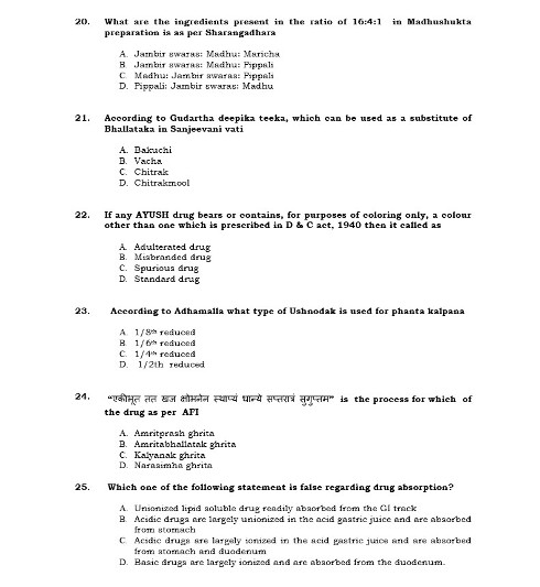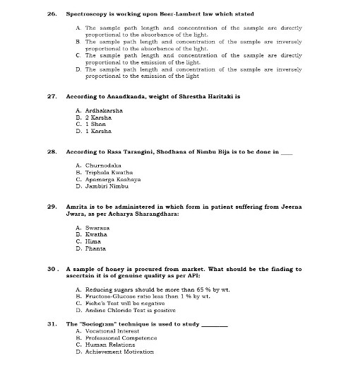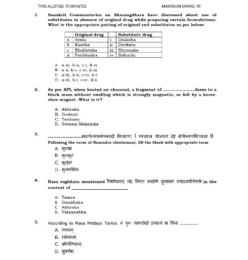 AIIA Rasa Shastra And Bhaishajya Kalpana 2022 Test Paper