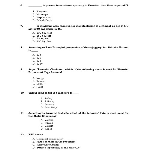 Ph.D Entrance Exam AIIA Rasa Shastra And Bhaishajya Kalpana 2022 Test Paper