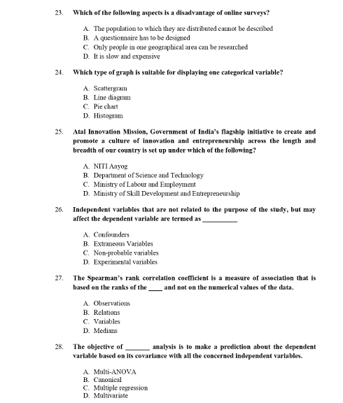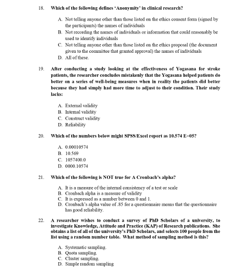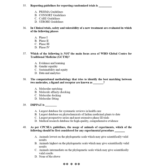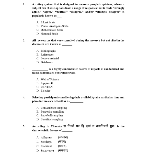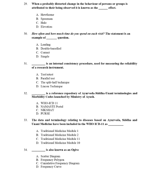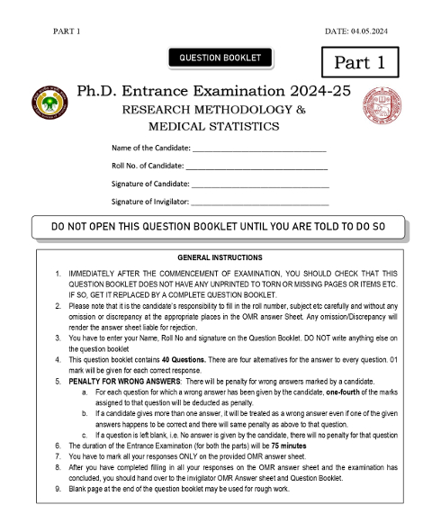 Ph.D Entrance Exam AIIA Research Methodology & Medical Statistics 2024 Test Paper