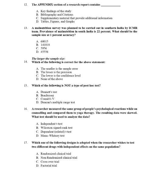 AIIA Research Methodology & Medical Statistics 2024 Test Paper