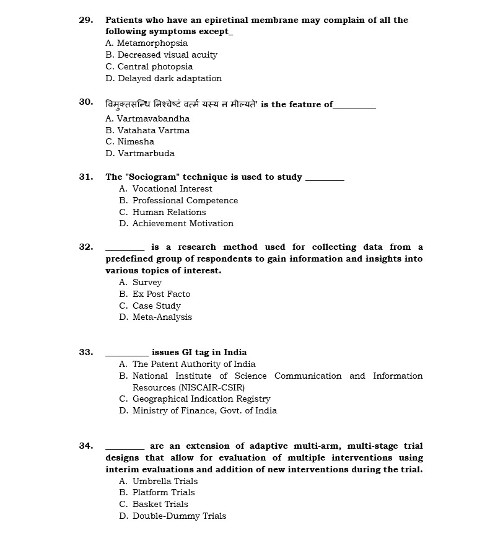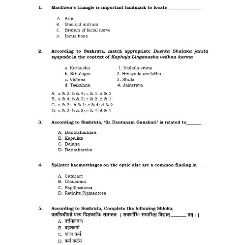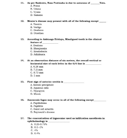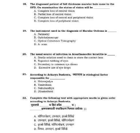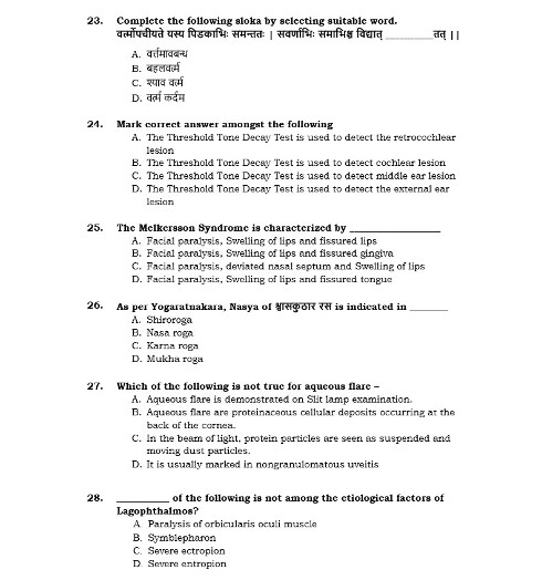 Ph.D Entrance Exam AIIA Shalakya Tantra 2022 Test Paper