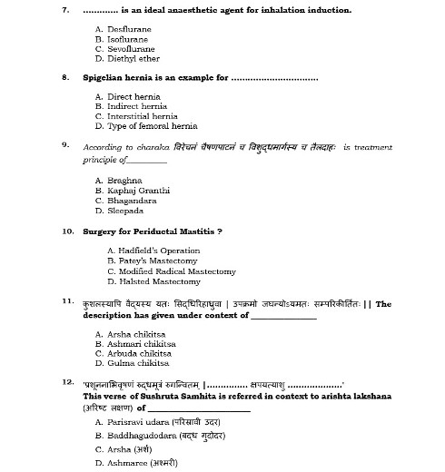 Ph.D Entrance Exam AIIA Shalya Tantra 2022 Test Paper