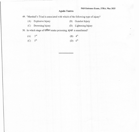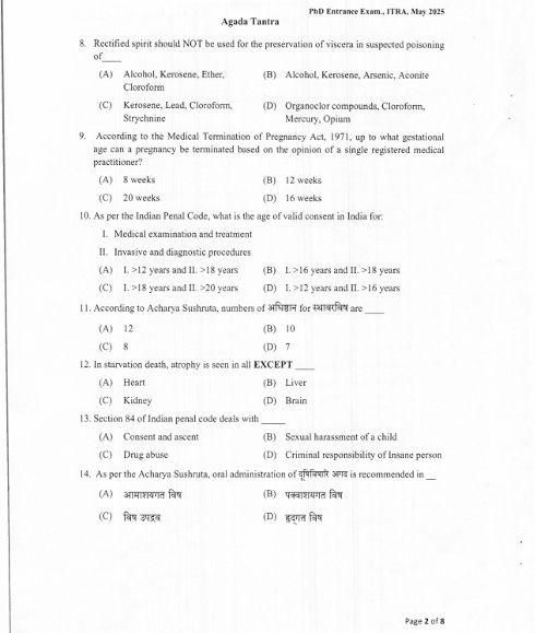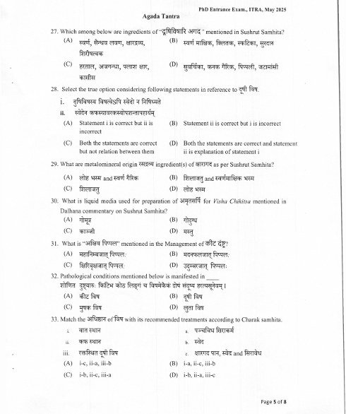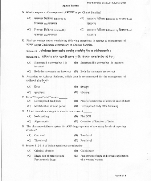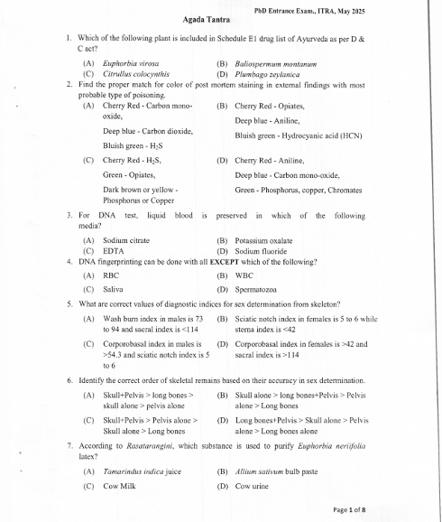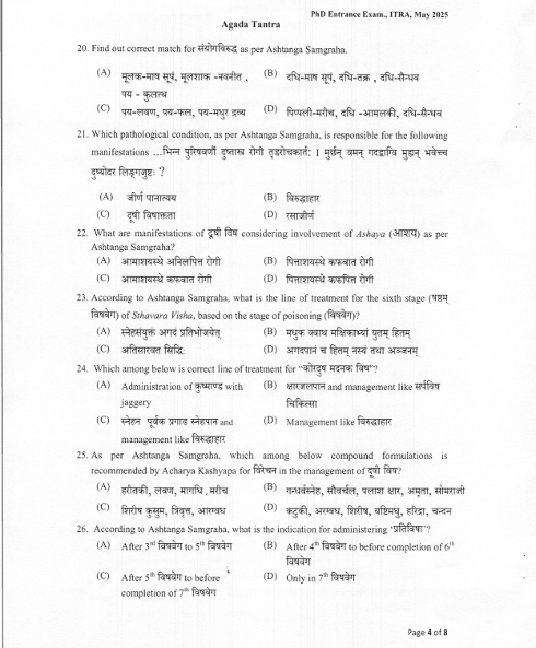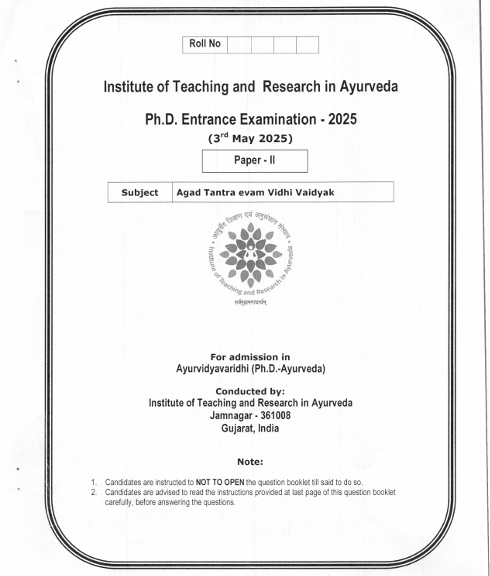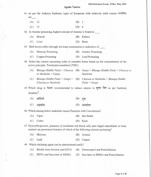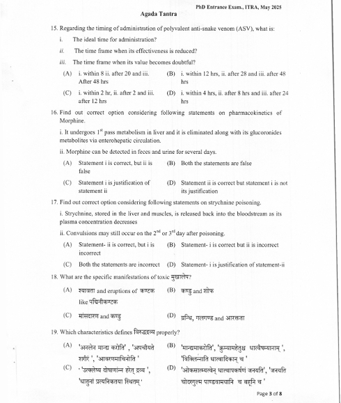 Ph.D Entrance Exam ITRA Agada Tantra evam Vidhi Vaidyak 2025 Test Paper