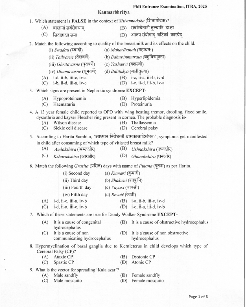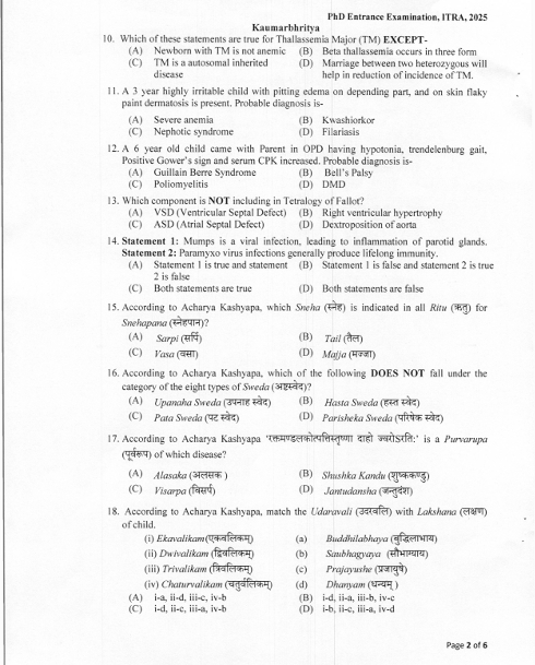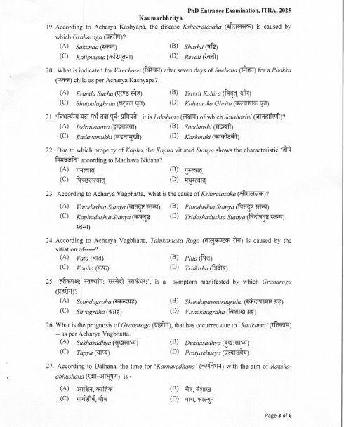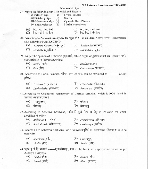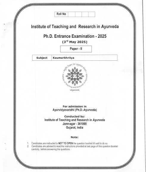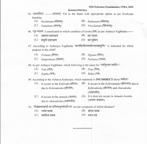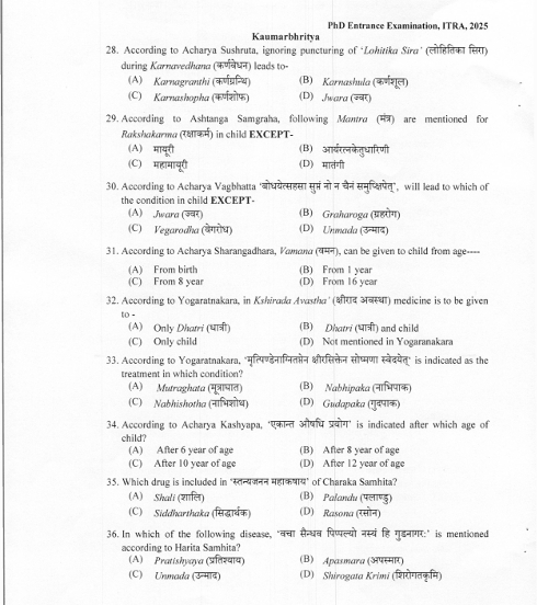 Ph.D Entrance Exam ITRA Kaumarbhritya 2025 Test Paper