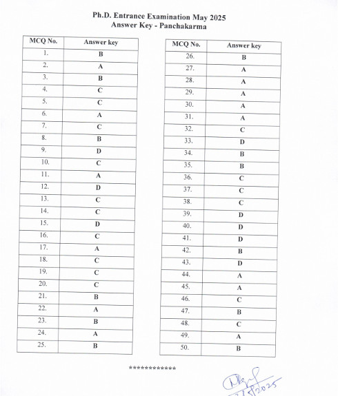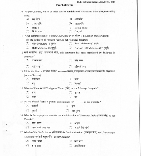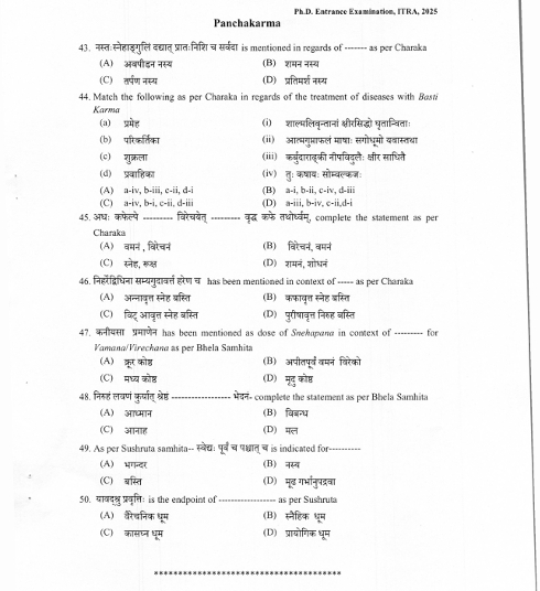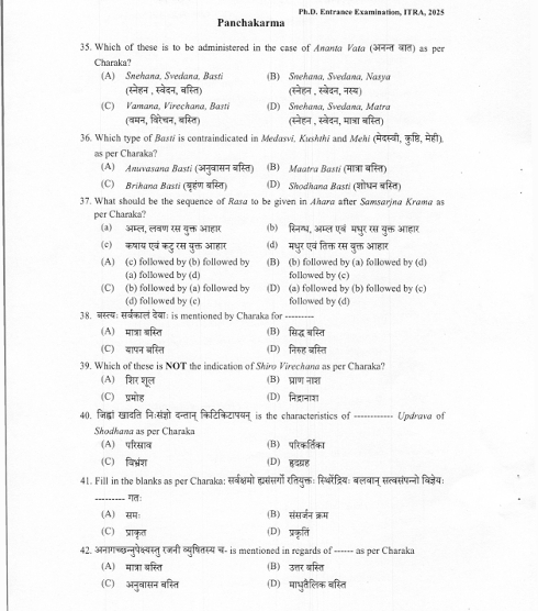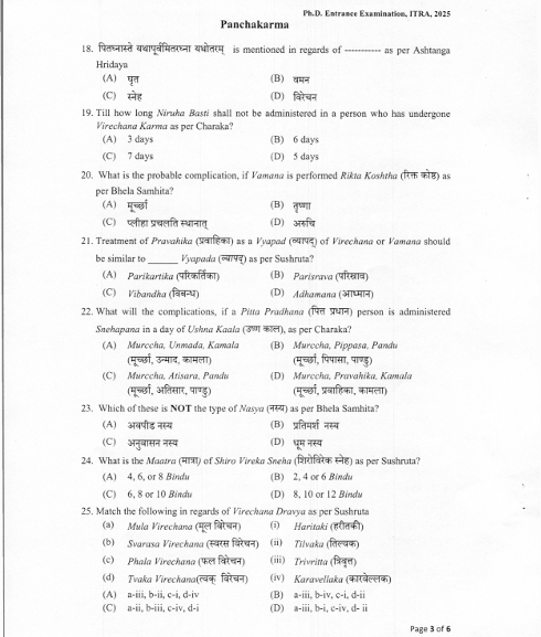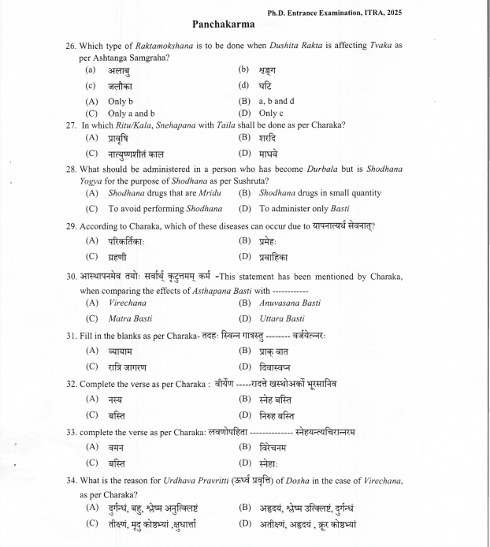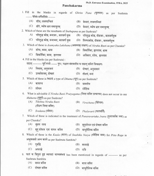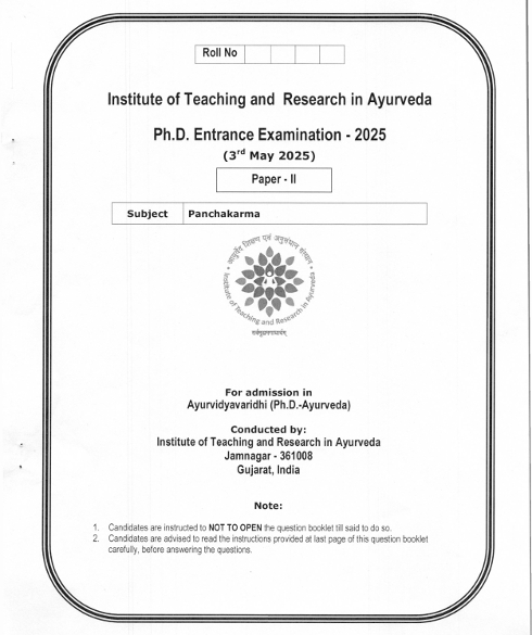 Ph.D Entrance Exam ITRA Panchakarma 2025 Test Paper