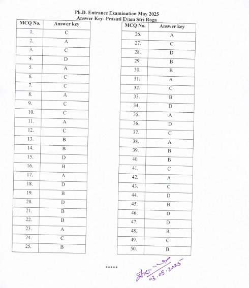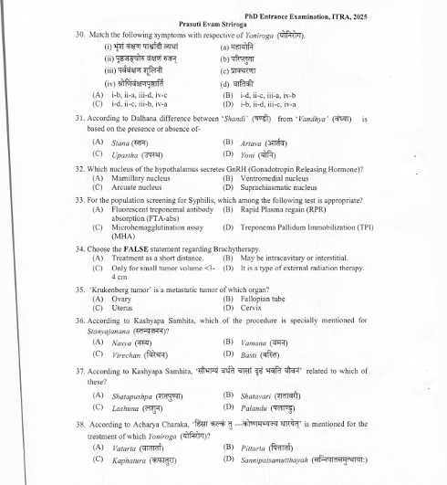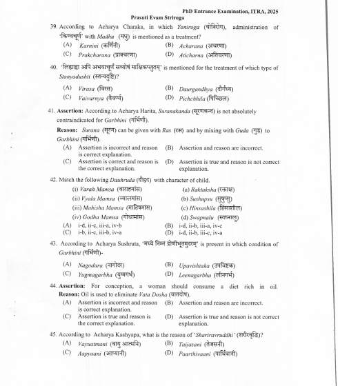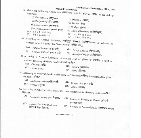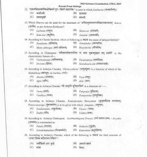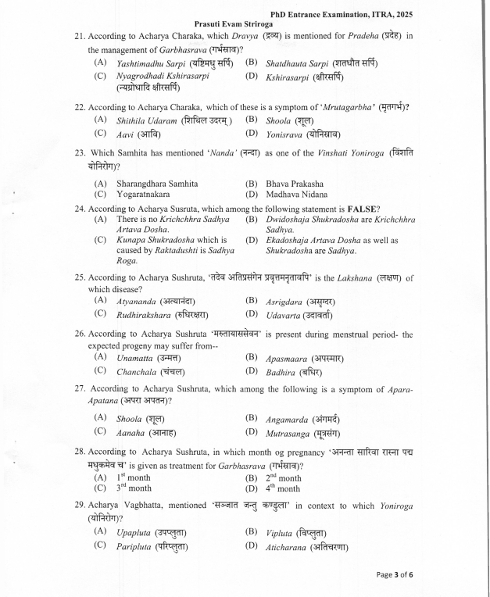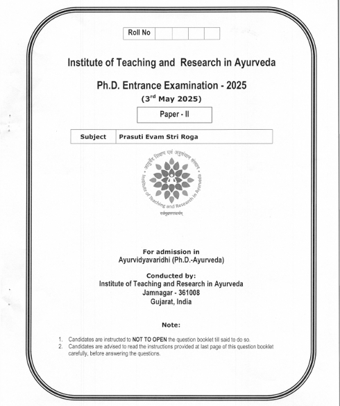 Ph.D Entrance Exam ITRA Prasuti Evam Stri Roga 2025 Test Paper
