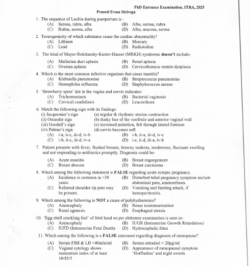 ITRA Prasuti Evam Stri Roga 2025 Test Paper