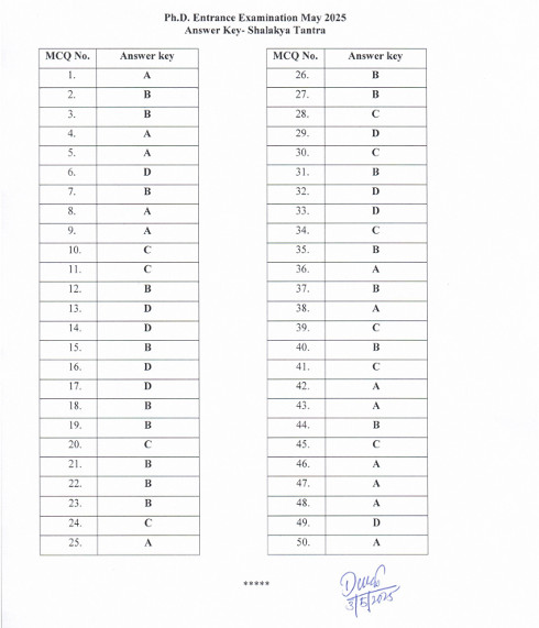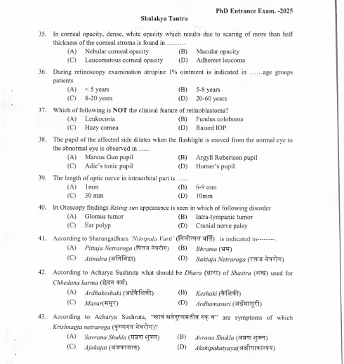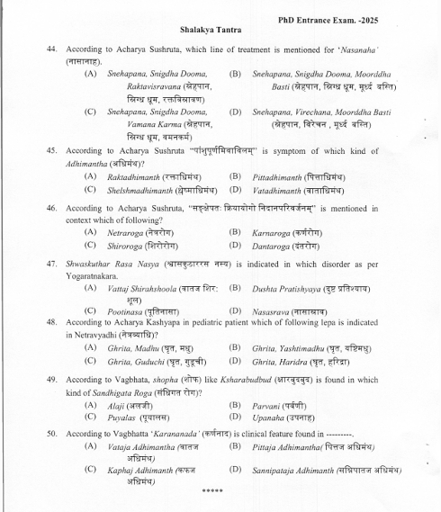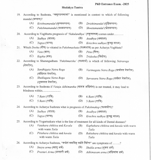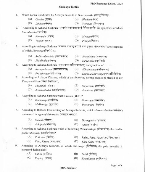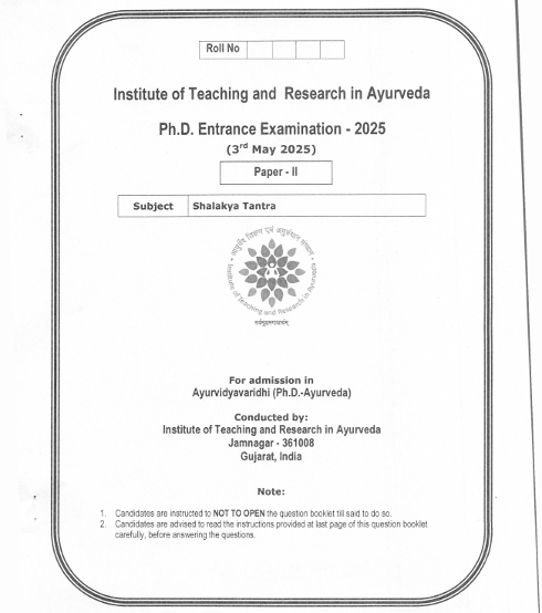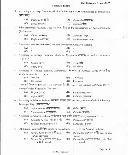 Ph.D Entrance Exam ITRA Shalakya Tantra 2025 Test Paper