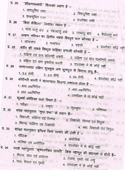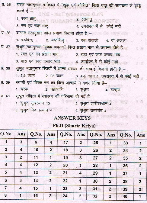 Ph.D Entrance Exam NIA Sharir Kriya 2015 Test Paper