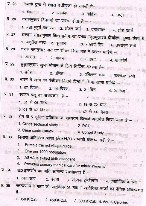 NIA Swasth Vritta 2015 Test Paper