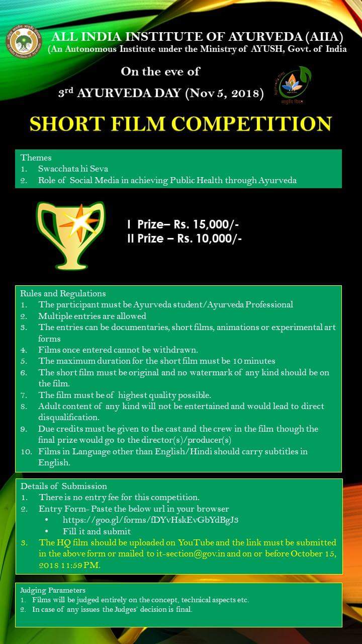 3rd Ayurveda Day: Short Film Competition, Organized by All India Institute of Ayurveda, Delhi.