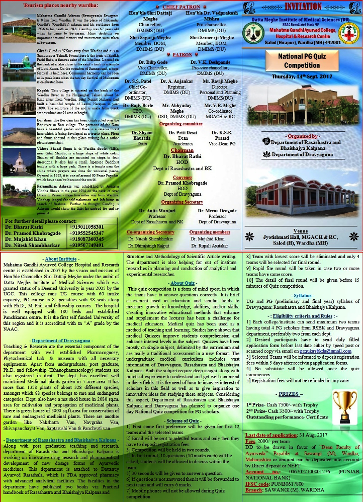 National PG Quiz Competition Organized by Mahatma Gandhi Ayurved College, Hospital & Research Centre, Wardha.
