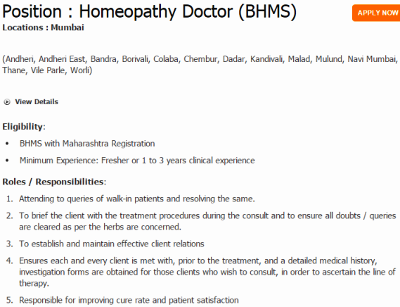 Job opportunities in homeopathy,homoeopathic job vacancy info February 2015
