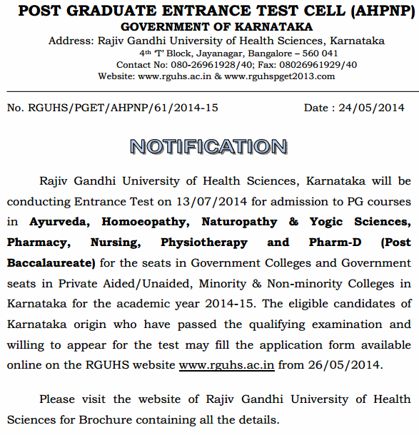 Notice for Rajiv Gandhi University of Health Sciences, Karnataka
