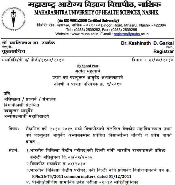 Admission Notice for Post Graduate Ayurveda Courses (MD/MS),
