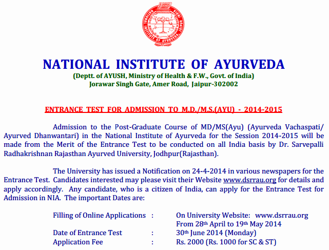 Ayurveda MD/MS entrance examination 2014 Alerts,Entrance Exam,Post Graduate Ayurved Common Entrance Test 2014,Ayurveda pg entrance exam 2014 notification,MD/MS Ayurveda 2014