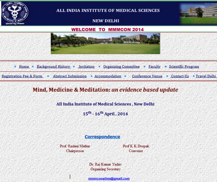 Two days Conference "Mind, Medicine & Meditation: an evidence-based update"(MMMCON 2014), organized by All India Institute of Medical Sciences , New Delhi.