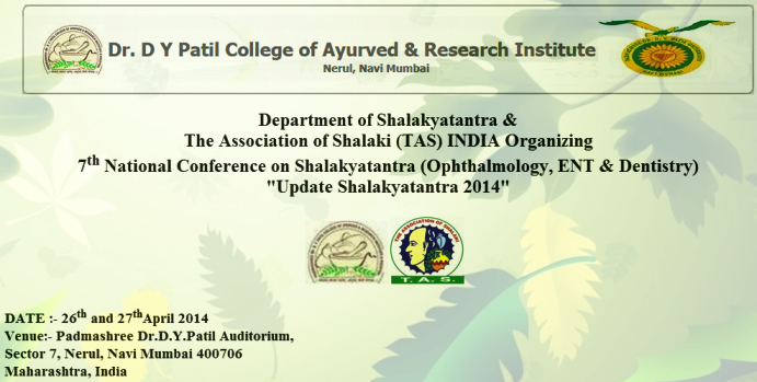 7th National Conference on Shalakyatantra (Ophthalmology, ENT & Dentistry) "Update Shalakyatantra 2014", organized by Dr. D Y Patil College of Ayurved & Research Institute Nerul, Navi Mumbai.