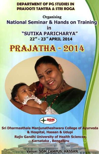 National Seminar and Workshop on Sutika Paricharya-PRAJATHA-2014, organized by SDM College of Ayurveda, Hassan, Karnataka.
