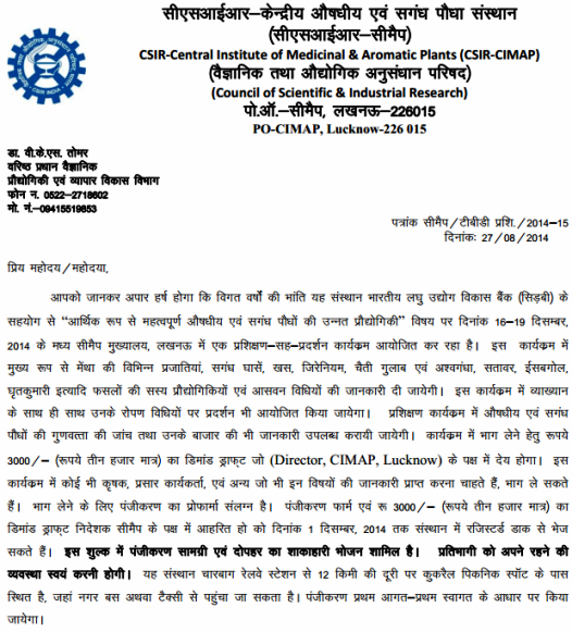 Training cum Demonstration Program, organized by Central Institute of Medicinal and Aromatic Plants(CSIR), Lucknow.