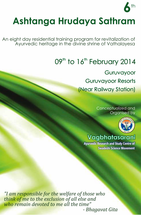 6th Ashtanga Hridaya Sathram, organized by Vagbhata Sarani Ayurvedic Studies & Research wing of Swadesi Science Movement,Kerala.
