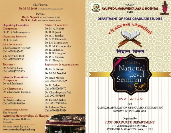 One Day National Level Seminar on "Clinical Application of Moulika Siddhanta" organized by Ayurveda Mahavidyalaya and Hospital,Hubli.