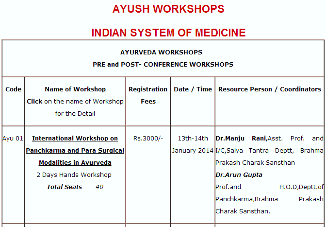 Two Days International Workshop on Panchkarma and Para Surgical Modalities in Ayurveda, organized by Team of Healthcare Professionals, AIIMS.