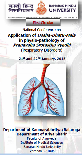 National Conference on Application of Dosha-Dhatu-Mala in Physio-Pathology of Pranavaha Srotastha Vyadhi(Respiratory Disorders), organized by Department of Kaumarbhitya/Bal roga and Department of Kriya Sharir, Faculty of Ayurveda IMS,BHU.