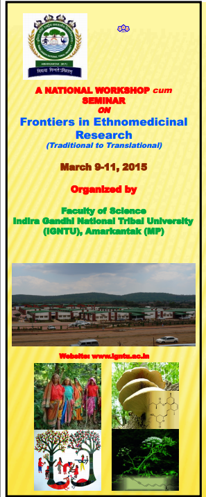 National Workshop cum Seminar on Frontiers in Ethnomedicinal Research : Traditional to Translational(FER-15), organized by Faculty of Science,Indira Gandhi National Tribal University(IGNTU), Amarkantak(MP).