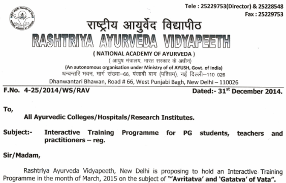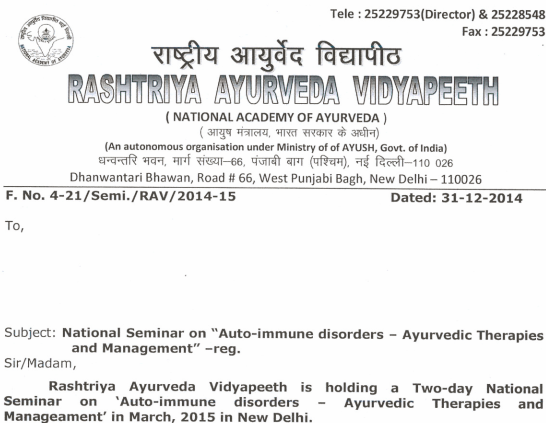 Two-day National Seminar on 'Auto-immune disorders-Ayurvedic Therapies and Manageament', organized by Rashtriya Ayurveda Vidyapeeth.