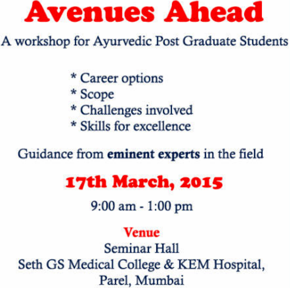 Workshop For Post Graduate Students of Ayurveda "Avenues Ahead", organized by Maharashtra University of Health Sciences, Nashik.