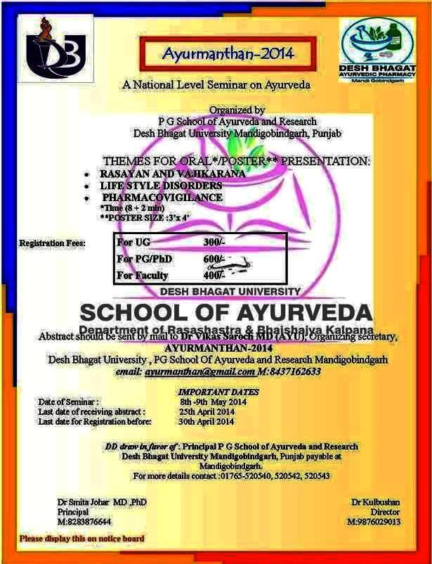 National Level Seminar Ayurmunthan - 2014, organized by School of Ayurveda, Desh Bhagat University, Punjab.