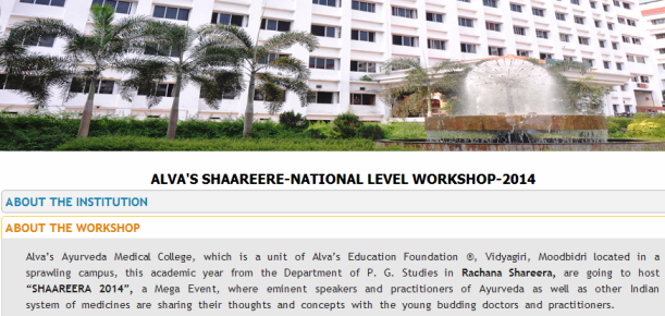 National Level Workshop "SHAAREERA 2014" on Clinical Approach Towards Marma, organized by Alva's Ayurveda Medical College, Moodbidri.