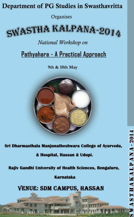 National Workshop on Pathyahara : A Practical Approach - Swastha Kalpana-2014, organized by Sri Dharmasthala Manjunatheshwara College of Ayurveda & Hospital, Karnataka.