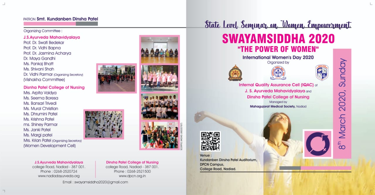 Swayamsiddha-2020: International Women's Day 2020, organized by IQAC, J.S. Ayurveda Mahavidyalaya and Dinsha Patel College of Nursing.