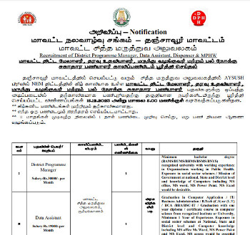 Vacancy for the post of District Programme Manager Homeo, Government of Tamil Nadu.