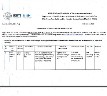 Online-Interview for the post of Project Scientist-C Homeo, ICMR-National Institute of Immunohaemotology, Mumbai.