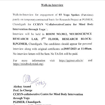 Walk-in for the post of Yoga Spokes, Postgraduate Institute of Medical Education & Research, Chandigarh.
