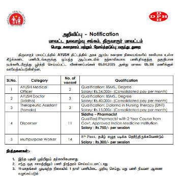 Vacancy for Various Siddha posts,