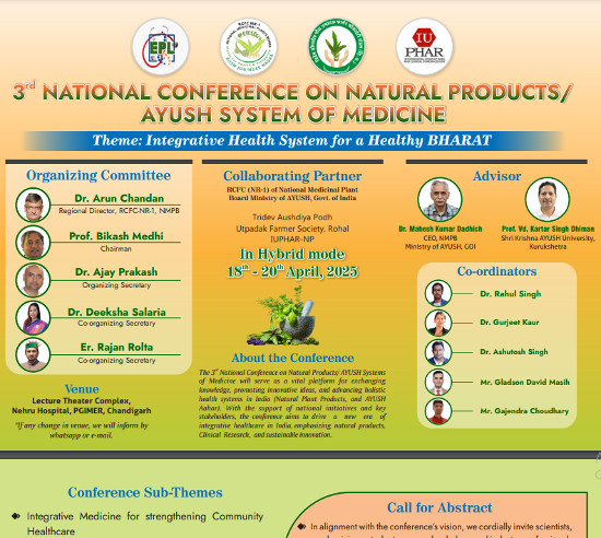 3rd National Conference on Natural Products/ AYUSH System of Medicine, Organized by Postgraduate Institute of Medical Education & Research, Chandigarh.
