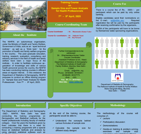 Training Course on Sample Size and Power Analysis for Health Professionals, Organized by National Institute of Health & Family Welfare, New Delhi.