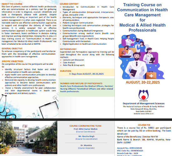 Training Course on Communication in Health Care Management for Medical & Allied Health Professionals, Organized by National Institute of Health and Family Welfare, New Delhi.
