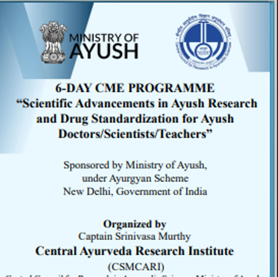 6-Day CME Programme "Scientific Advancements In Ayush Research and Drug Standardization for Ayush Doctors/Scientists/Teachers", Organized by Central Ayurveda Research Institute, Chennai.