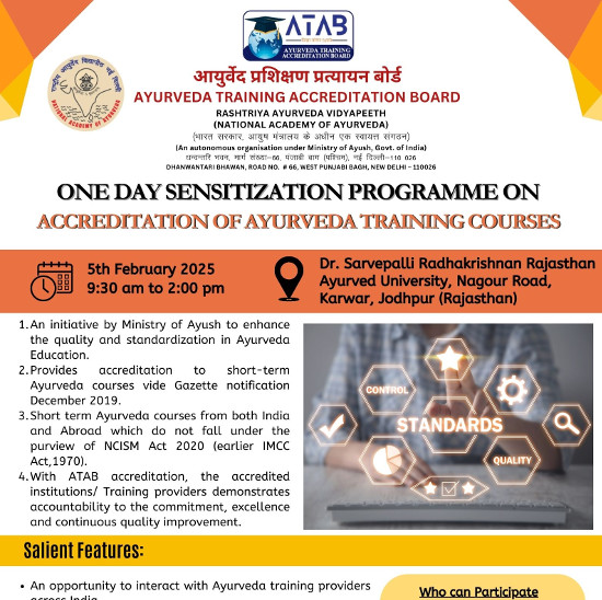 One day Sensitization Programme on Accreditation of Ayurveda Training Courses, Organized at Dr. Sarvepalli Radhakrishnan Rajasthan Ayurved University, Jodhpur.