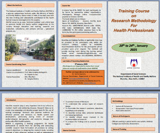 Training Course on Research Methodology for Health Professionals, Organized by National Institute of Health and Family Welfare, New Delhi.