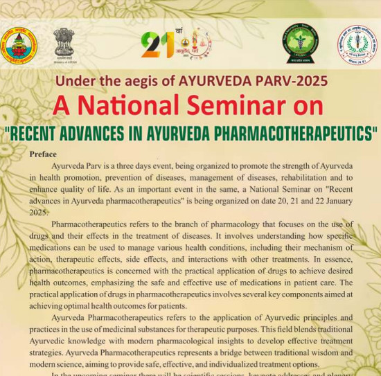 A National Seminar on "Recent Advances in Ayurveda Pharmacotherapeutics", Organized at Pt. Khushilal Sharma Government Ayurveda College and Institute, Bhopal.