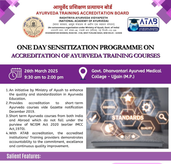 One Day Sensitization Programme on Accreditation of Ayurveda Training Courses, Organized by Rashtriya Ayurveda Vidyapeeth, New Delhi.
