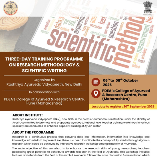 Three-Day Training Programme on Research Methodology & Scientific Writing, Organized by Rashtriya Ayurveda Vidyapeeth, New Delhi.